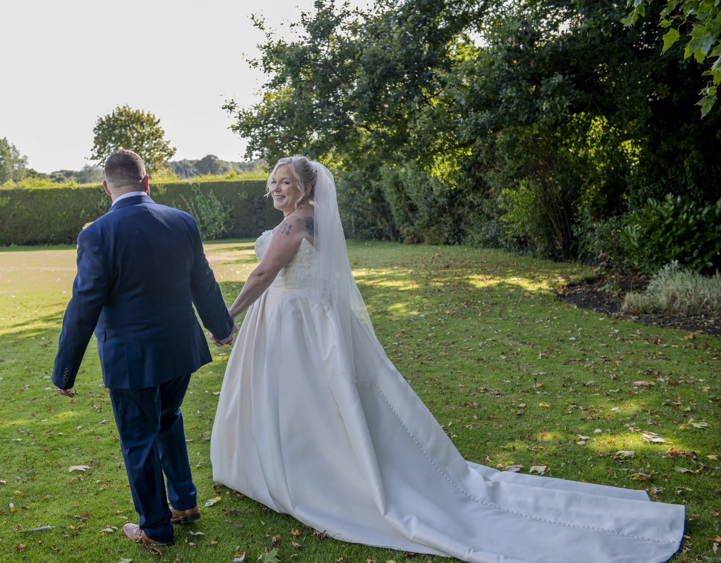 As the evening drew in, more guests arrived and the celebration continued. The couple cut their elegant navy blue and white cake in front of a sea of smiling faces. For their first dance, Richard and Sandra chose “Chasing Cars” by Snow Patrol. To keep the energy high, Sandra surprised everyone with a fun dance to Erasure alongside Asda, a nostalgic nod to their 1980s dancefloor days. The party kept going well into the early hours, with the dance floor full of friends and family dancing, laughing, and celebrating a love that brought everyone together.