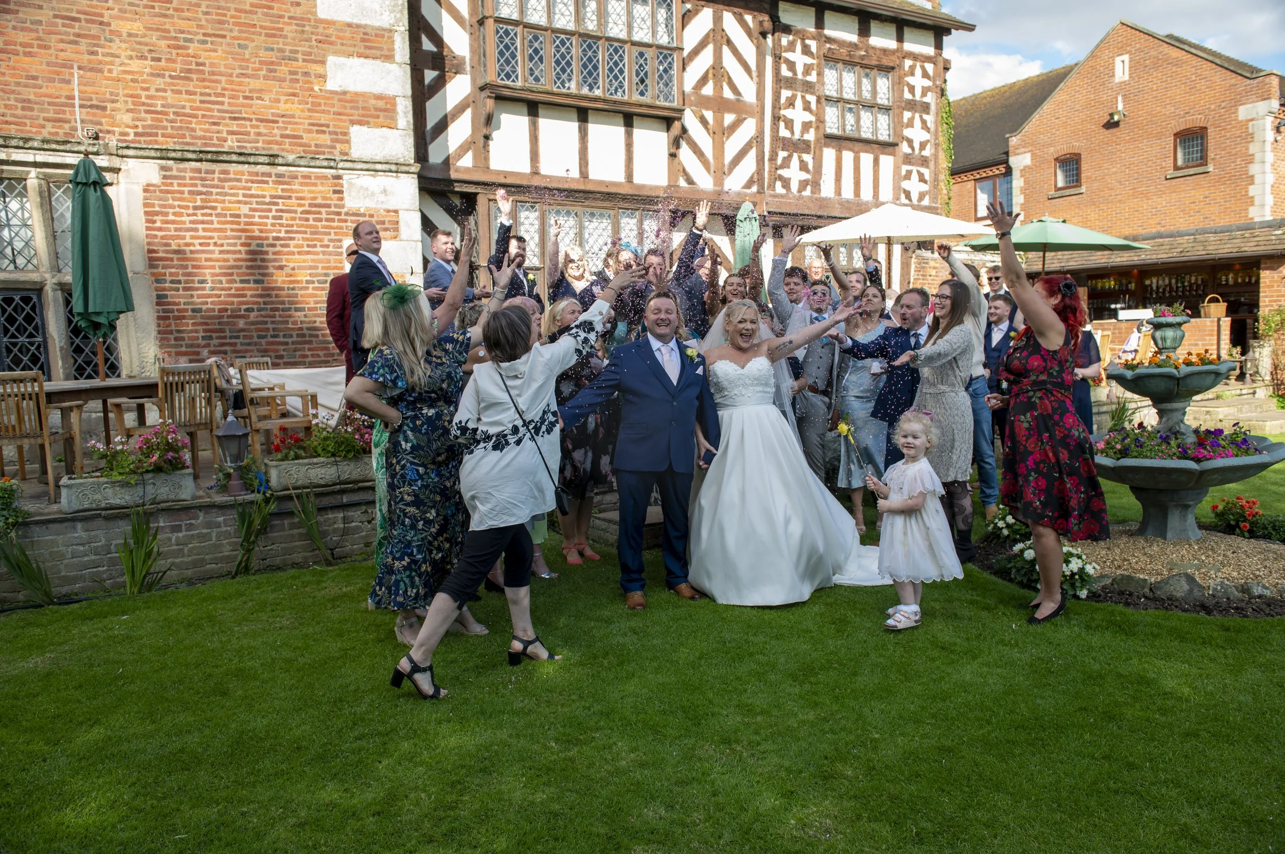 Guests were treated to refreshing drinks and delicious canapés outdoors while the photographer, Debbie, captured beautiful family moments and joyful group shots. The confetti throw was a highlight, with Sandra and Richard at the center of a joyful celebration. Live music from Ryan Evans provided a dreamy backdrop, enhancing the magic of the summer afternoon.