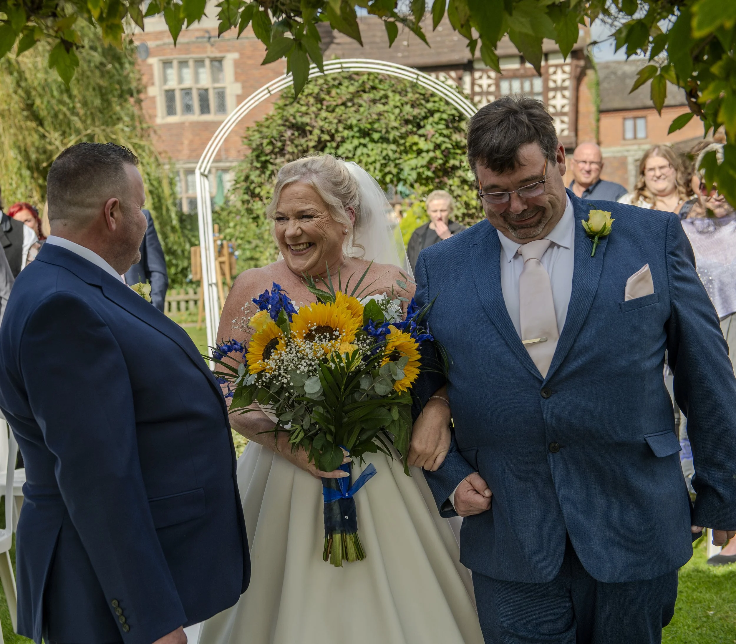 With Shania Twain’s “From This Moment On” playing softly, Sandra made her way down the aisle toward Richard, who was waiting with a smile that said it all. The ceremony, set within the beautiful grounds of The Albright Hussey, was heartfelt and deeply personal, filled with emotion, laughter, and happy tears. As they were pronounced husband and wife, Stevie Wonder’s “Signed, Sealed, Delivered” rang out, and the newlyweds walked hand-in-hand back up the aisle, surrounded by love.